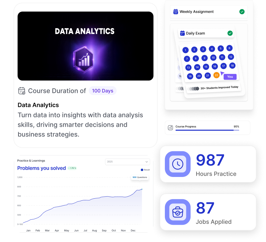 The course offers both online and offline learning formats, 1-on-1 doubt-clearing sessions, lifetime access, and a dedicated job assistance program. You’ll also earn HackerRank badges and become eligible for the Microsoft Data Analyst certification. Whether you’re a student, fresher, or working professional, this course is structured to make you job-ready in 100 days.