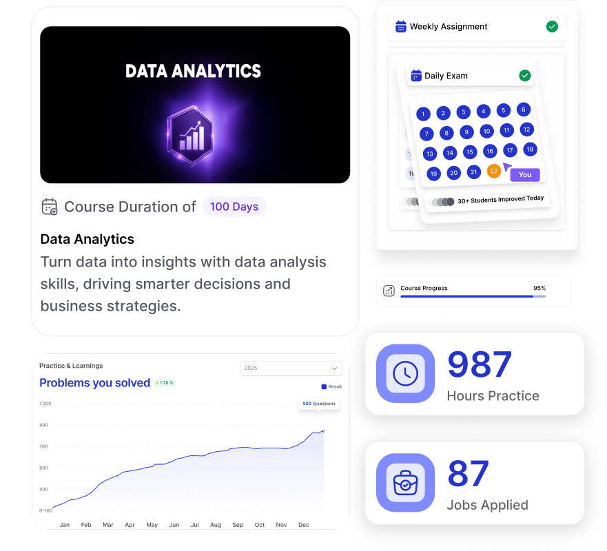 The course offers both online and offline learning formats, 1-on-1 doubt-clearing sessions, lifetime access, and a dedicated job assistance program. You’ll also earn HackerRank badges and become eligible for the Microsoft Data Analyst certification. Whether you’re a student, fresher, or working professional, this course is structured to make you job-ready in 100 days.