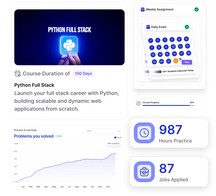 The Python Fullstack course in Visakhapatnam is a 100-day intensive, project-based program designed to make you job-ready. The total course fee is ₹70,000, inclusive of training materials, mentor guidance, and placement support. F