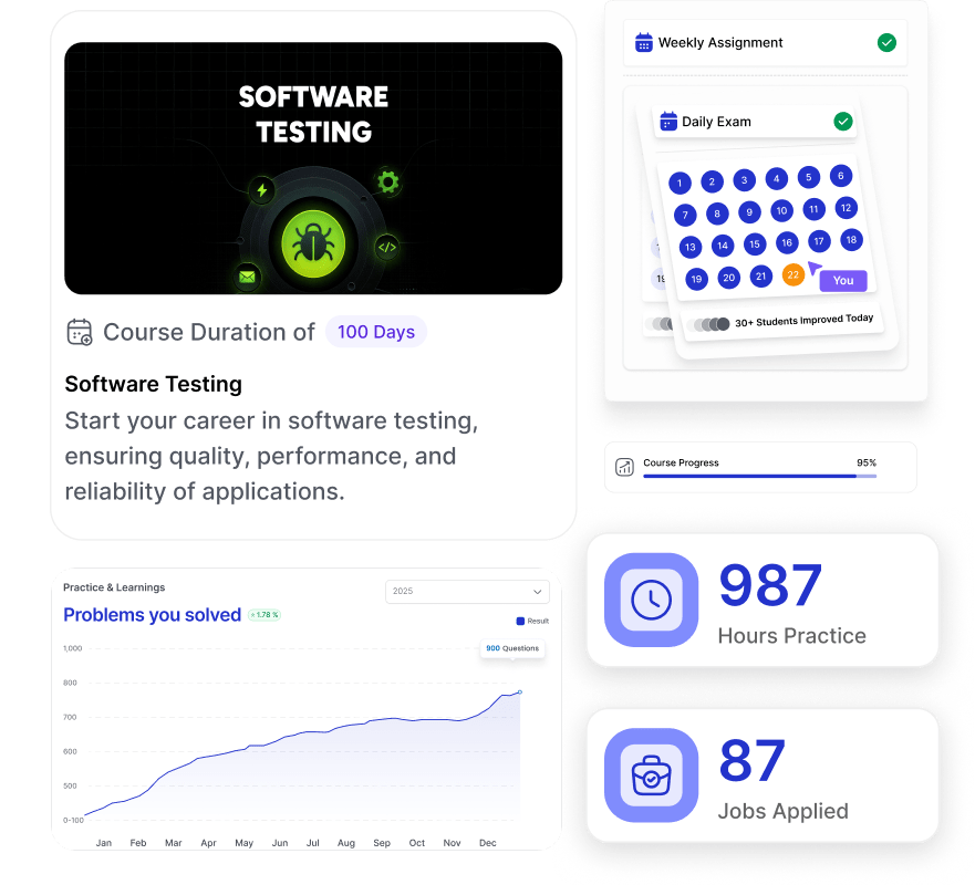 The course duration of software testing training in Vijayawada is 100 days. However, this course duration isn’t fixed for every training institute. It depends on multiple factors like course syllabus, class durations, need for practical sessions, etc.